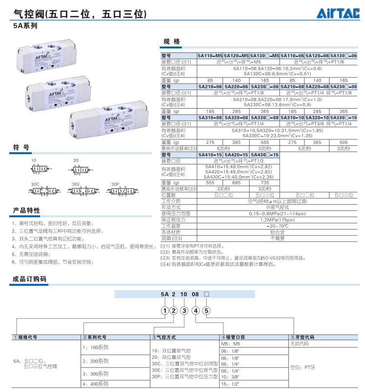 氣控閥(五口二位,三位)